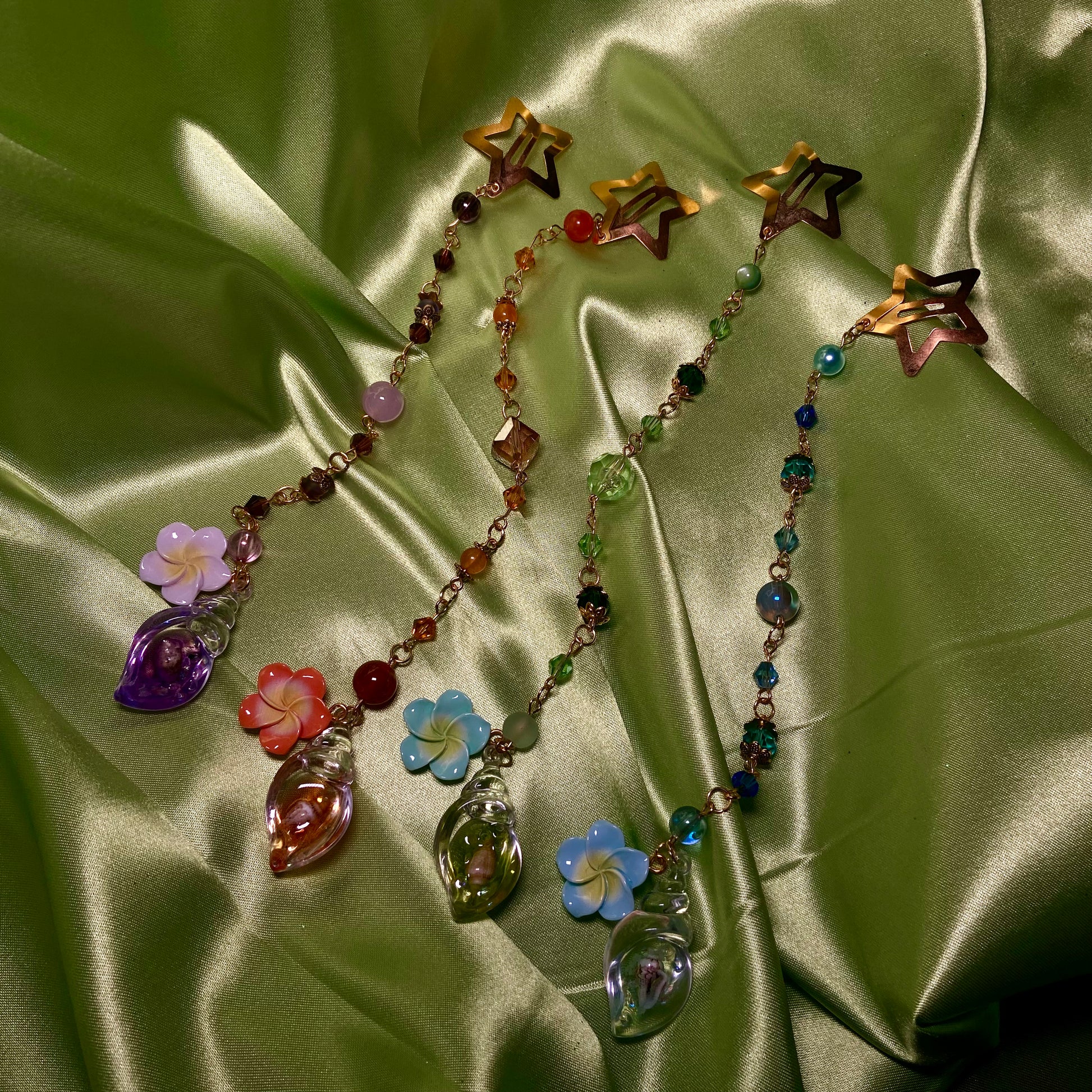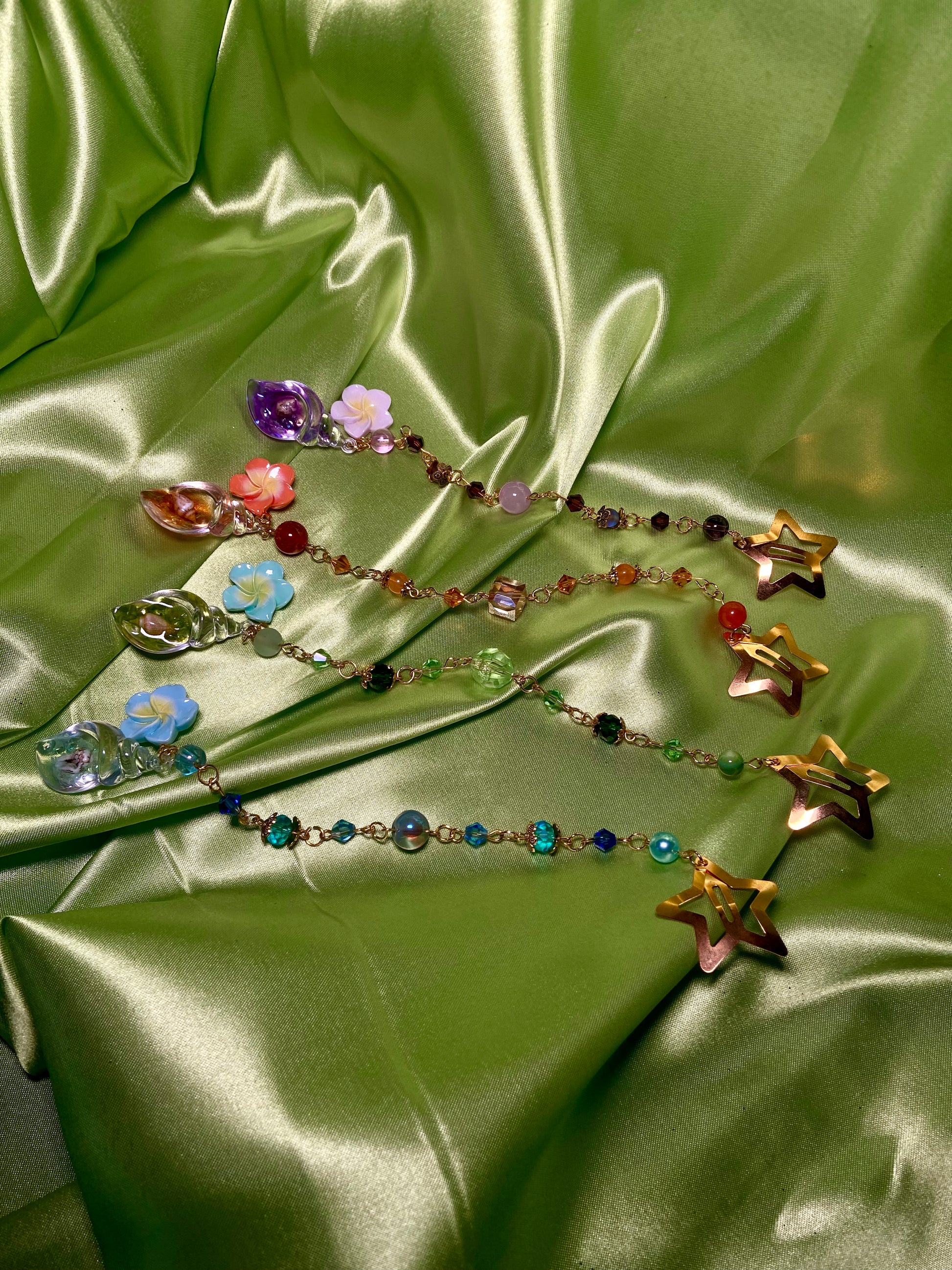 This hair clip allows you to experience the glory of sunshine even in the dark. Inspired by deep side ocean life, the seashells attached glow in the dark after spending time in natural daylight! The beach wouldn’t be so without all its wildlife and naturality. These divines ,together or individually, are perfect for any soul. Made with high-quality materials, it brings a touch of sparkle and style to any outfit. Featuring a dazzling palette of blue, orange, purple, and green colors paired with shell-like charms, these accessories add a gorgeous yet sophisticated touch to any outfit. Embody what divinity is all about and grasp a glimpse of what the Tropical Climate has to offer.