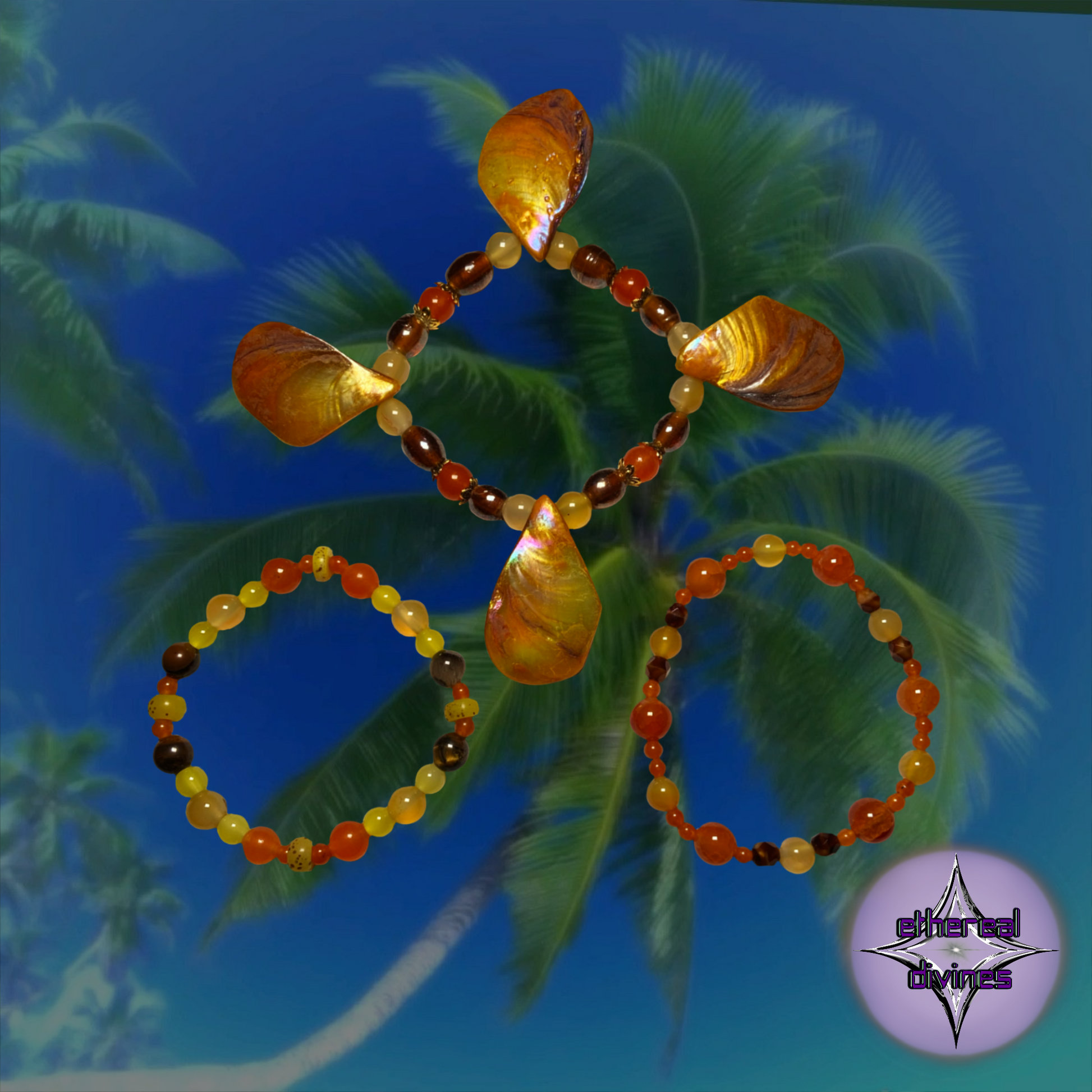This beaded bracelet trio allows you to get a slight taste of the most incredible climates to bestow on Earth. The inspiration for this trio is specifically the bonfires set up in small portions of the beach as well as the seashells people collect while they’re visiting the beach. These divines ,together or individually, are perfect for any soul. Made with high-quality materials, it brings a touch of sparkle and style to any outfit. Featuring a dazzling palette of brown, orange, and yellow colors paired with shell-like beads, this trio adds a gorgeous yet sophisticated touch to any outfit. Embody what divinity is all about and grasp a glimpse of what the Tropical Climate has to offer.